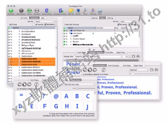 FontAgentR Pro,您可以優化您的字體控制面板為您組織,查看,比較,選擇,激活,打印,