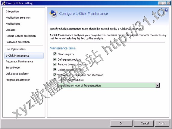 一鍵式系統維護和自動維護:優化系統啟動和關閉程式的時間,優化清理註冊表,整理磁碟碎片和
